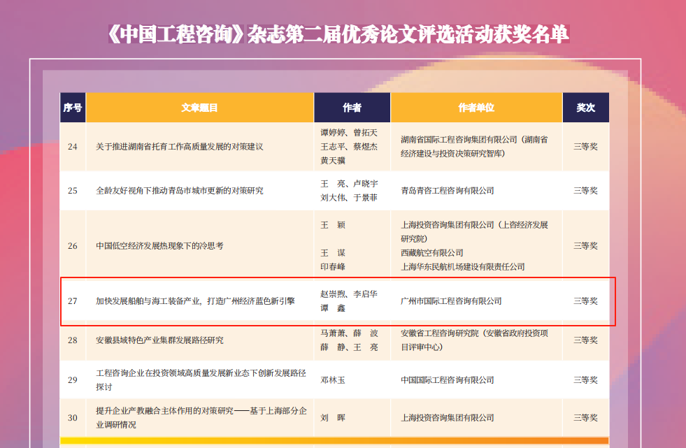 廣州國(guó)際咨詢(xún)公司榮獲《中國(guó)工程咨詢(xún)》雜志第二屆優(yōu)秀論文獎(jiǎng)